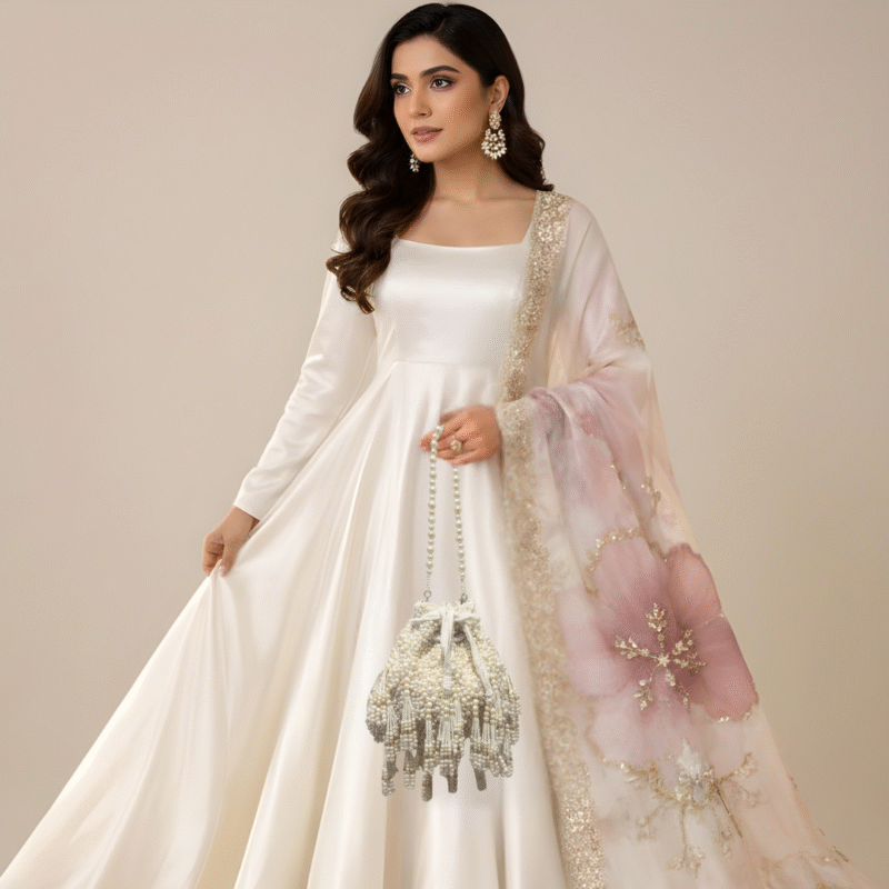 Explore our carefully curated range of handcrafted potlis and bags, designed to blend traditional artistry with contemporary silhouettes.