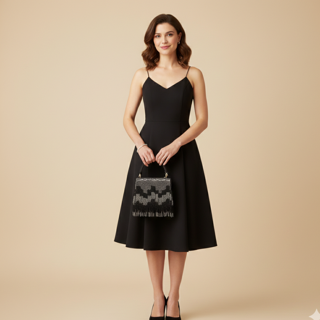 Perfect for cocktail evenings, weddings, and festive gatherings, this versatile black statement bag complements sarees, lehengas, gowns, and western outfits with equal ease.