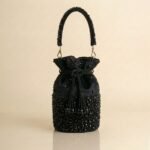 Discover the allure of artisanal luxury with our Embellished Evening Potli Bag. Designed for the discerning fashion enthusiast, this bucket-style handbag features thousands of hand-sewn faceted beads that create a multidimensional shimmering effect at the base.