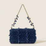 A chic embellished flap bag featuring intricate crystal work and a beautifully detailed handle. Elegant, versatile, and ideal for both day and evening wear.