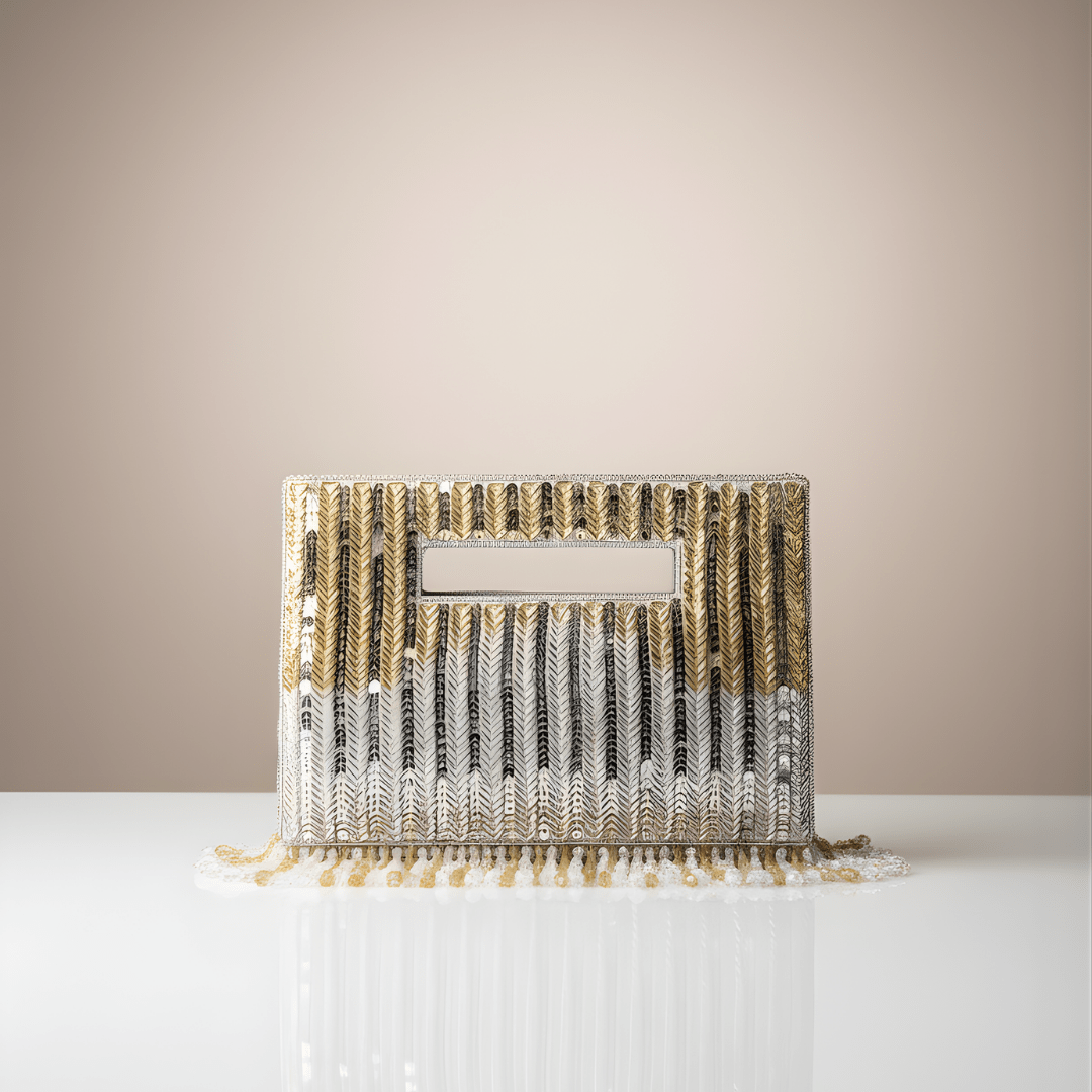Make an unforgettable entrance with a clutch that defines artisanal luxury. Meticulously handcrafted by skilled artisans, this bag features layers of premium beads arranged in a rhythmic, wave-like pattern. The cascading “drip” effect of the beads adds a three-dimensional depth that catches the light from every angle.