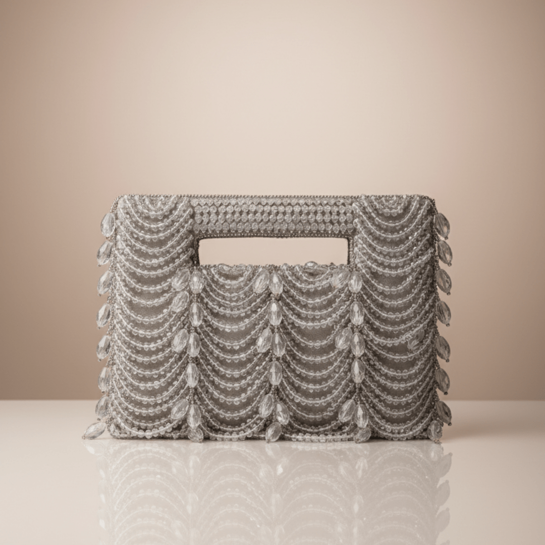 Make an unforgettable entrance with a clutch that defines artisanal luxury. Meticulously handcrafted by skilled artisans, this bag features layers of premium beads arranged in a rhythmic, wave-like pattern. The cascading “drip” effect of the beads adds a three-dimensional depth that catches the light from every angle.