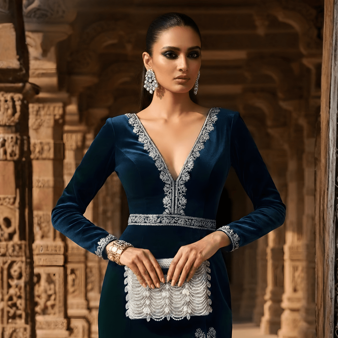 The structured rectangular frame is complemented by a modern cutout handle, offering a seamless and chic way to carry your essentials. Beyond its stunning exterior, the interior is lined with soft fabric to ensure your phone, cards, and lipstick are kept safe and scratch-free. Whether paired with a contemporary gown or traditional festive attire, this beaded handbag is the ultimate finishing touch for the discerning fashionista.