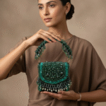 Elevate your evening look with the Riona Hand-Beaded Micro-Bag. Featuring an opulent mix of crystal baguettes, teardrop beads, and rich velvet textures, this bag offers a jewel-toned aesthetic perfect for galas, weddings, or high-fashion events. Available in a modern Triangular Geometric or a classic Curved Satchel silhouette.