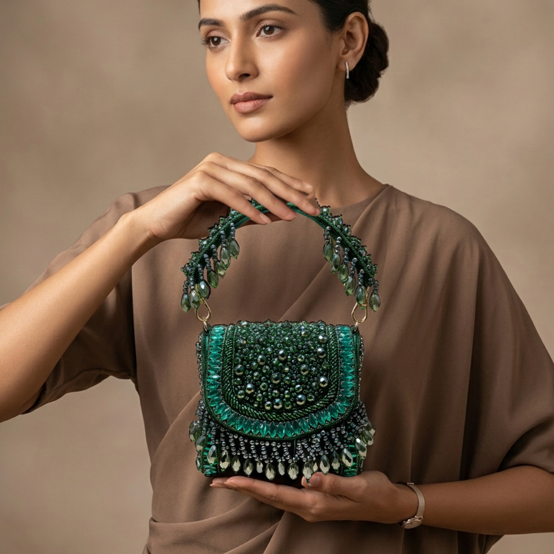 Indulge in the maximalist elegance of our Hand-Embellished Evening Clutch Collection. Each bag is a masterclass in craftsmanship, utilizing hundreds of precision-placed glass beads and crystals to create a lush, textured finish that mimics the depth of a royal garden.