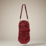 Tara Capsule Clutch Bag is a handcrafted masterpiece that blends timeless glamour with modern elegance. Adorned with radiant stones, cutdana, zari, and beads, this designer clutch features delicate handmade tassels, a beaded handle, and a luxurious suede finish inside and out. With its signature capsule silhouette, it’s spacious enough to hold your essentials while adding a touch of quiet opulence to every outfit.